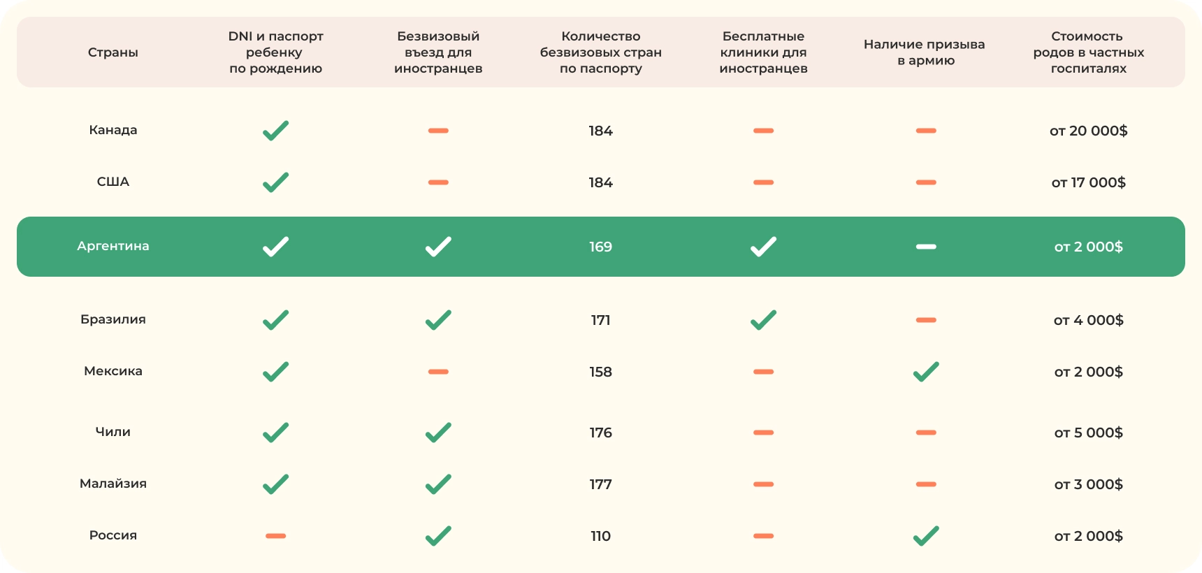 Ваш малыш рождается уже гражданином Аргентины. Это дает ребенку доступ к бесплатному образованию, медицине и социальной защите в Аргентине. Потомки вашего ребенка также имеют возможность стать гражданами Аргентины по праву крови.